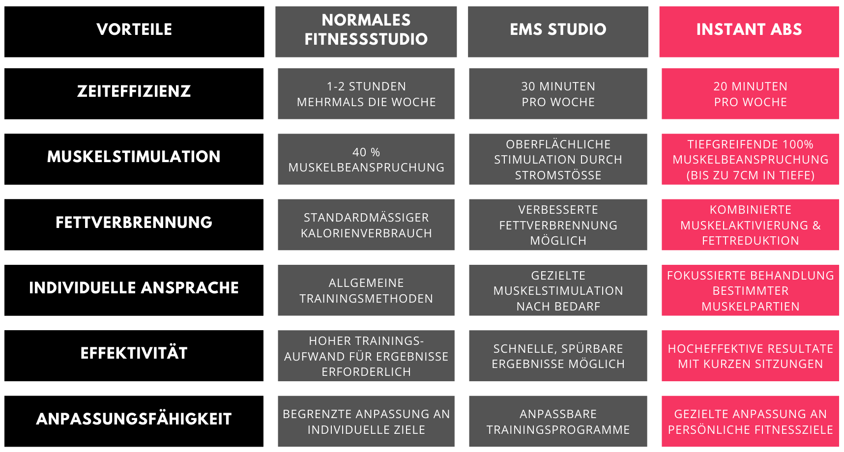 INSTANT ABS ist nicht nur die perfekte Lösung für diejenigen, die wenig Zeit haben oder Fitnessstudios eher meiden. Es ist auch eine fantastische Ergänzung für Fitnessbegeisterte, die ihre Trainingsroutine auf ein neues Level bringen möchten. Selbst wenn du regelmäßig trainierst, ermöglicht dir INSTANT ABS, bestimmte Muskelpartien gezielt, fokussiert und effektiv zu trainieren. Egal ob du deine Routine optimieren oder einfach effizienter trainieren möchtest, INSTANT ABS bietet dir eine bequeme aber effektive Möglichkeit, deine Fitnessziele zu erreichen.